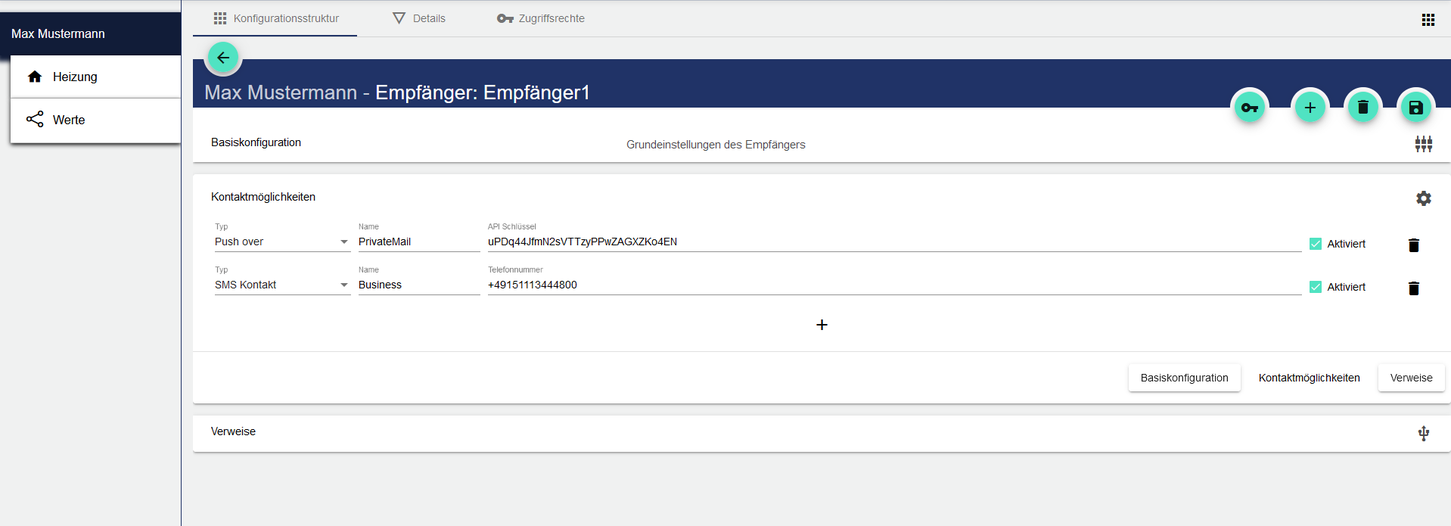 um zu einzelnen Kontakten die Kontaktmöglichkeiten, wie SMS, E-Mail, Push Over App oder VoIP Sprachanruf zuzuordnen.