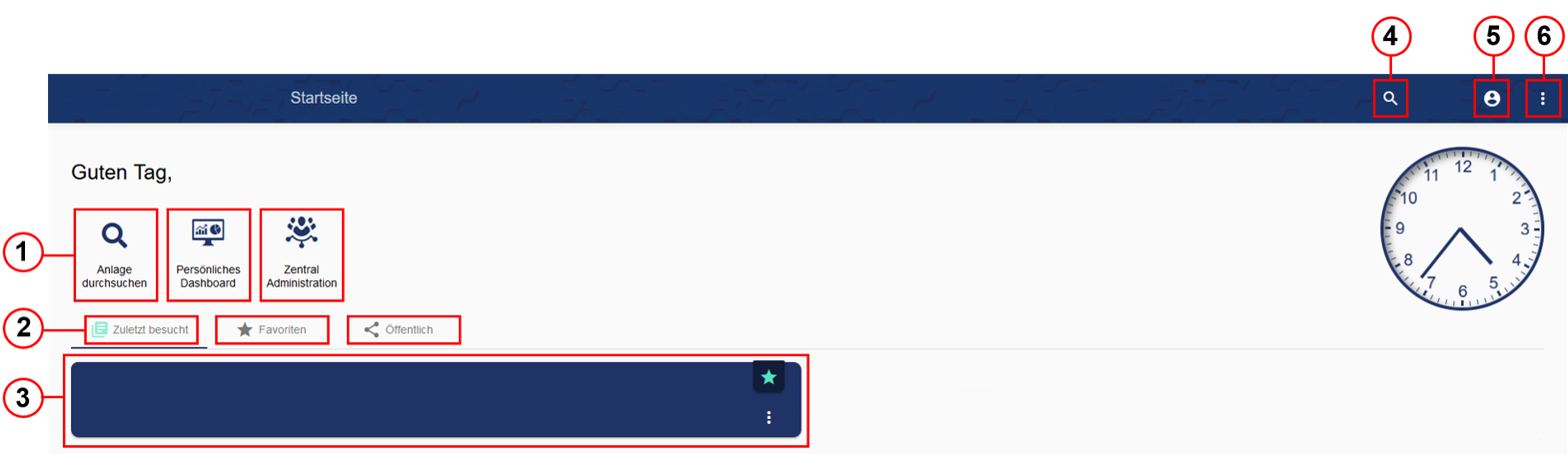 Anlage durchsuchen / Persönliches Dashboard / Zentrale Administration