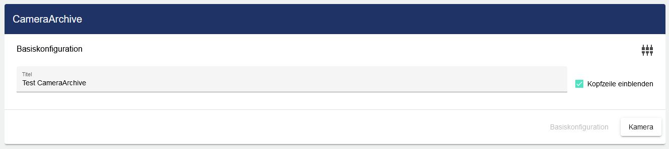 In der Basiskonfiguration des Camera Archive vergeben Sie einen geeigneten Titel. Durch die Auswahl des Hakens kann die Kopfzeile eingeblendet werden.