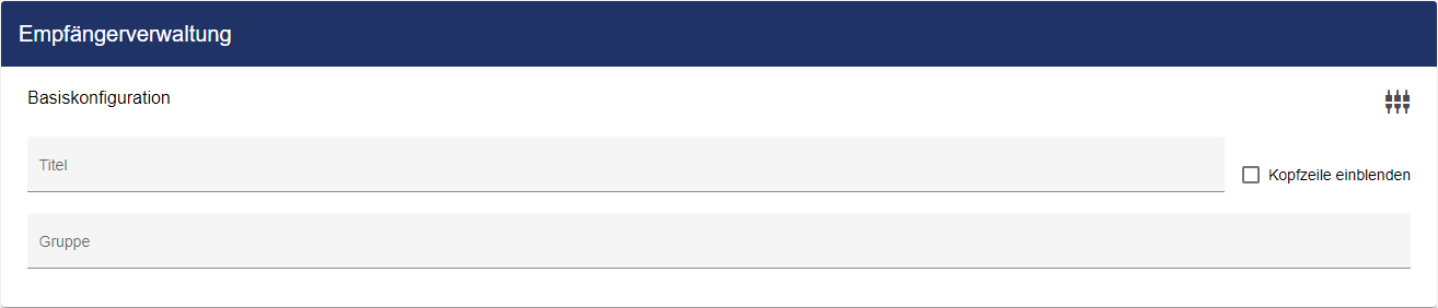 Passen Sie die Empfängerverwaltung über die Basiskonfiguration an. Hier vergeben Sie Ihrer Empfängerverwaltung zunächst einen geeigneten Titel und weisen ihm eine Gruppe zu.