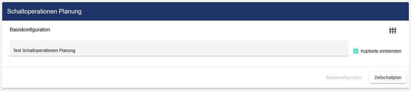 In der Basiskonfiguration der Schaltoperationen Planung vergeben Sie eine geeignete Beschriftung (Titel). Durch die Auswahl des Hakens kann die Kopfzeile eingeblendet werden.