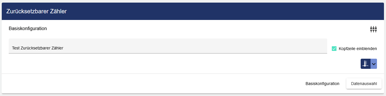 In der Basiskonfiguration des Zurücksetzbaren Zählers vergeben Sie eine geeignete Beschriftung (Titel). Durch die Auswahl des Hakens kann die Kopfzeile eingeblendet werden.