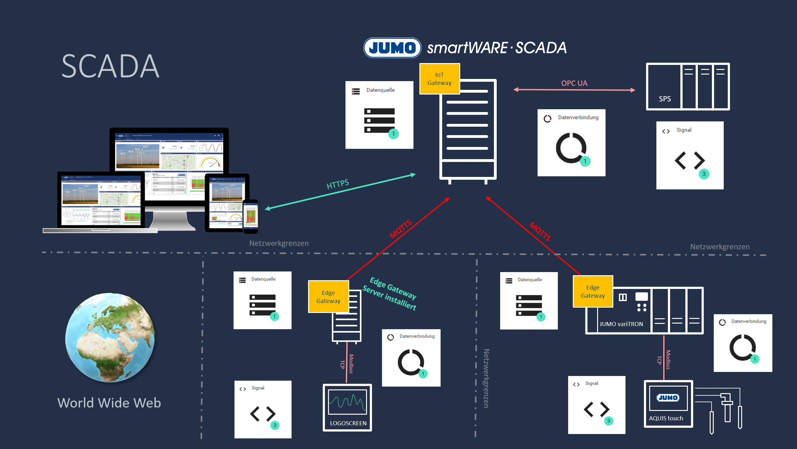 Jeder JUMO variTRON beinhaltet “onboard” ein IoT-Gateway für JUMO Cloud und JUMO smartWARE SCADA Anwendungen.