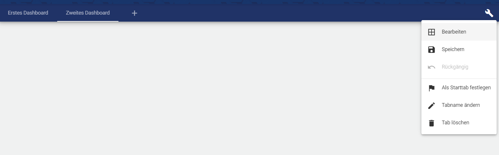 Über das Schraubenschlüsselsymbol öffnet sich ein Menü, über das Sie in den Bearbeitungsmodus des Dashboards gelangen.