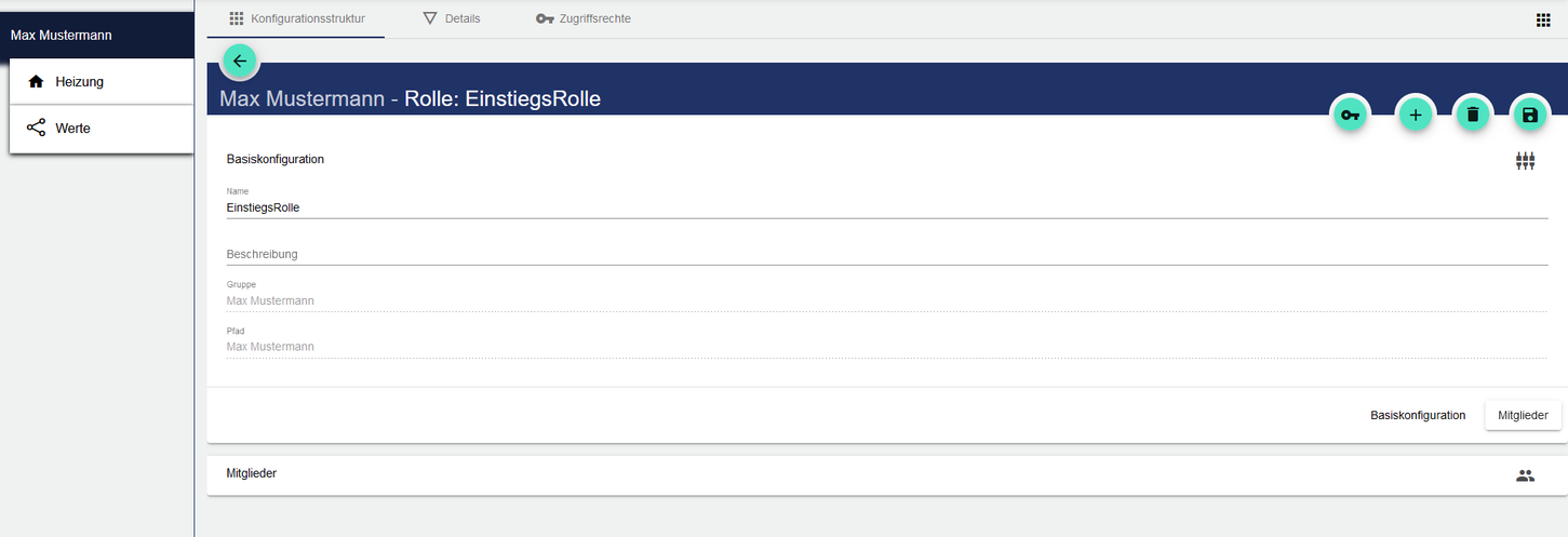 Über die Auswahl der Schaltfläche “Rolle” kann eine bereits angelegte Rolle bearbeitet werden. Über das Plus wird eine neue Rolle angelegt.