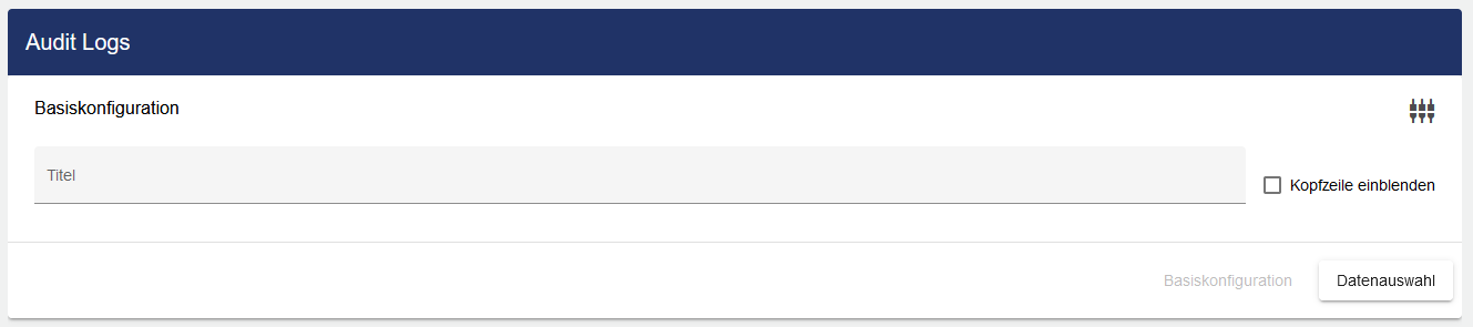 In der Basiskonfiguration des Audit Logs vergeben Sie einen geeigneten Titel. Durch die Auswahl des Hakens kann die Kopfzeile eingeblendet werden.