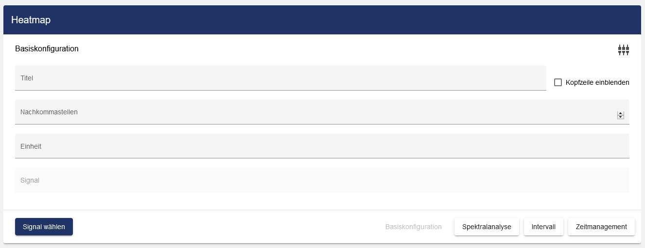 In der Basiskonfiguration der Heatmap vergeben Sie einen geeigneten Titel. Durch die Auswahl des Hakens kann die Kopfzeile eingeblendet werden. Optional können Sie noch eine Nachkommastelle und eine Einheit auswählen.