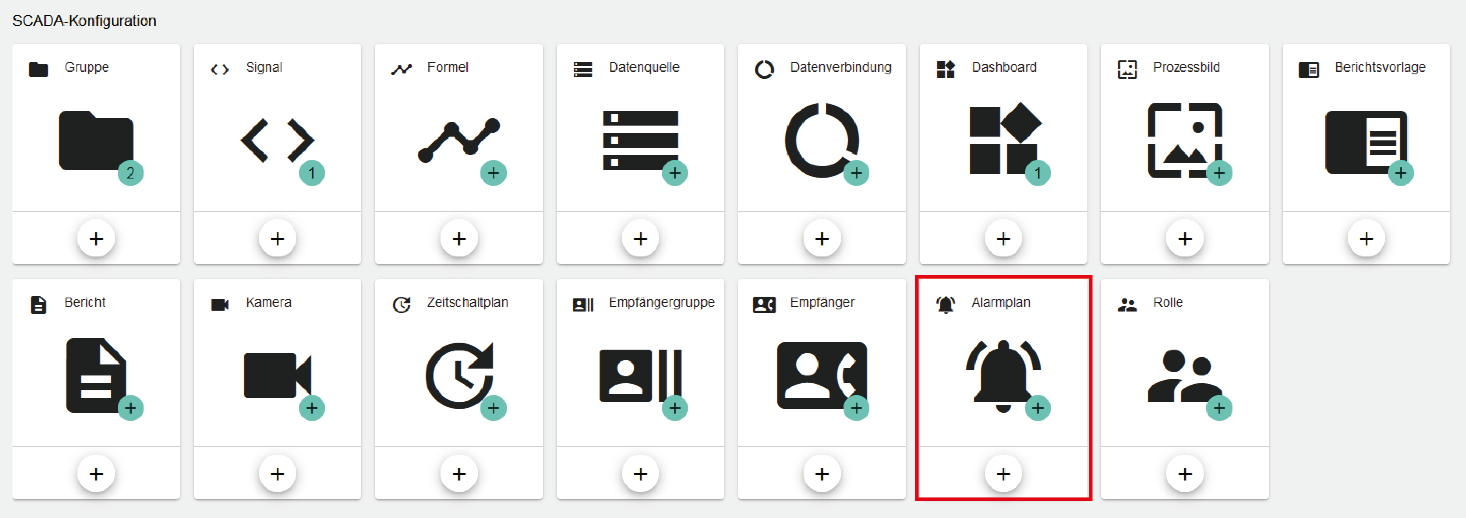 “Alarmplanung” und andere Widgets in das Dashboard einfügen (Siehe Alarmplan )