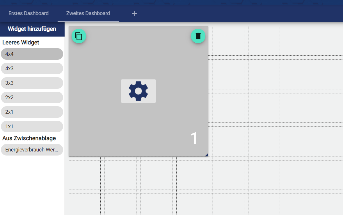 Dort können neue Widgets hinzugefügt, positioniert und bearbeitet werden.